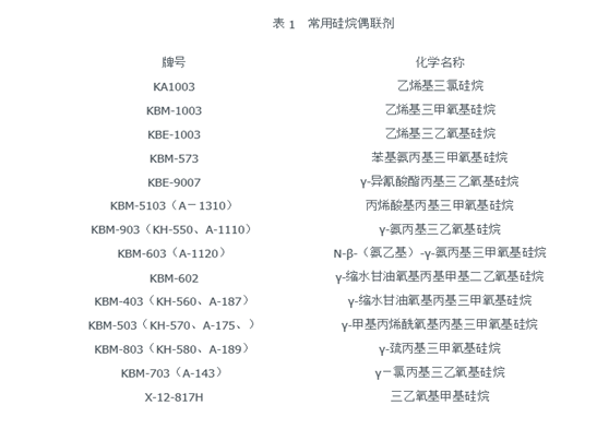 硅烷偶联剂分子中含有两种不同的反应性基团,其通式为RSiX3, X表示水解性官能基,它可与甲氧基、乙氧基、溶纤剂以及无机材料(玻璃、金属、SiO2)等发生偶联反应;R代表与聚合物分子有亲和力或反应能力的活性官能团,如乙烯基、乙氧基、氨基、环氧基、甲基丙烯酰氧基、巯基等,可与无机材料、各种合成树脂、橡胶发生偶联反应。